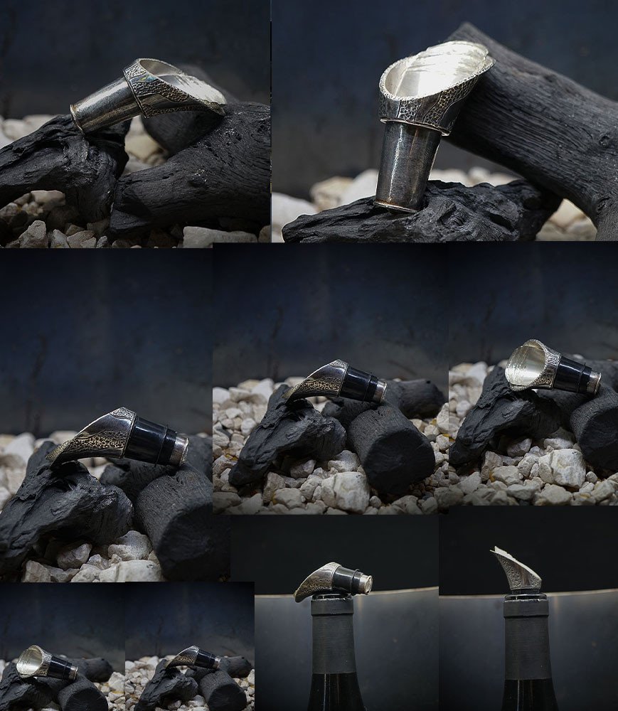 Découvrez l’élégance et la fonctionnalité de ce bouchon verseur anti-goutte exceptionnel, conçu en argent massif.