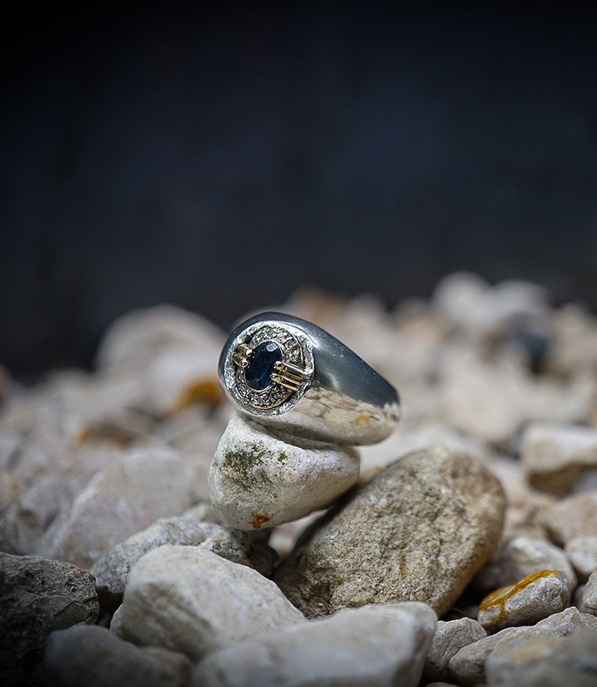 Lovely Storm Collection - Bague Saphir et Diamants en or Argent Massif.