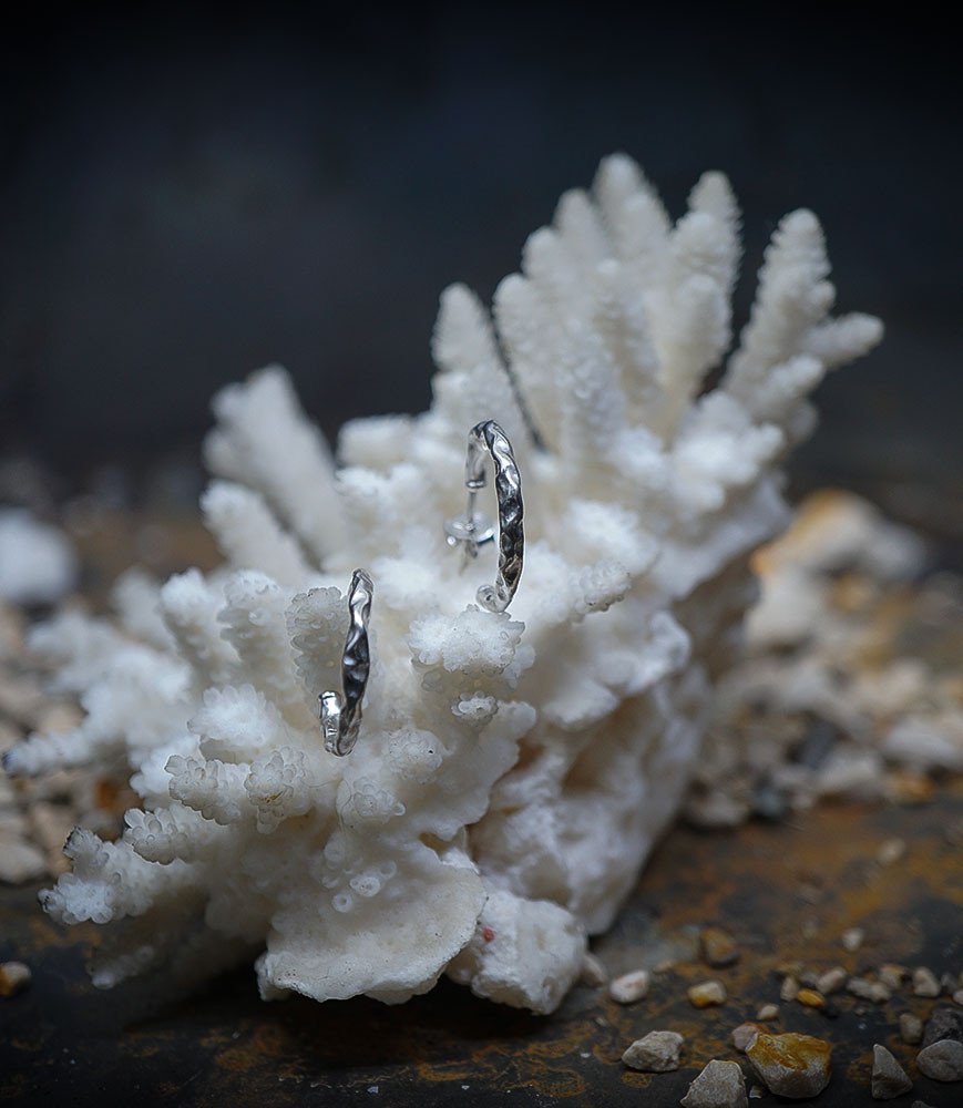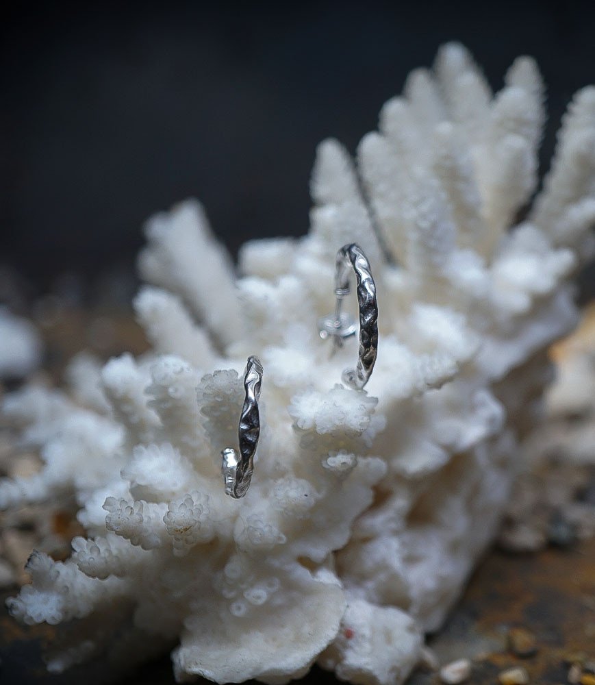 Ces créoles martelées en argent sont le choix parfait pour celles qui apprécient les bijoux délicats mais avec une touche d'originalité texturée, apportant une note lumineuse et subtilement travaillée.