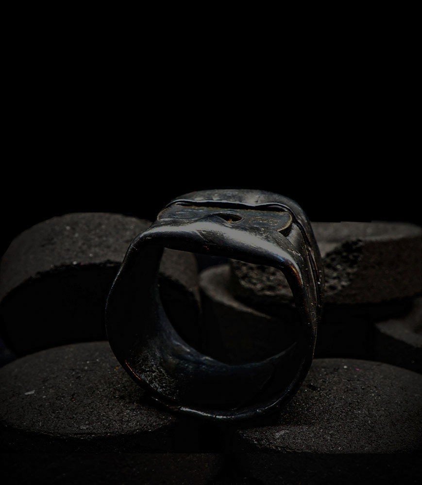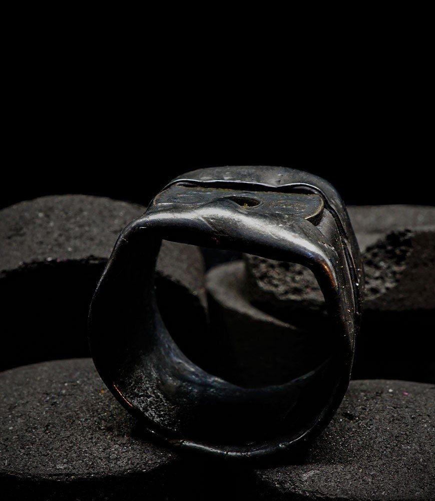 Cette bague en argent 925/1000 (12,2grammes) née de cette idée. Idée qui m'a permise de créer une bague largue1,95 cm simple, légère malgré son aspect massif qui conviendra je pense parfaitement à ceux qui n'aiment pas les chevalières trop lourdes mais qui apprécient les bagues qui en imposent.