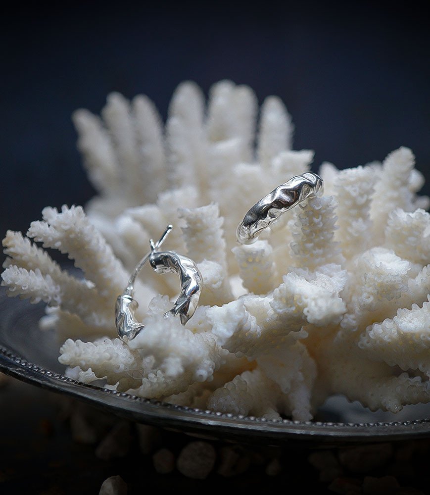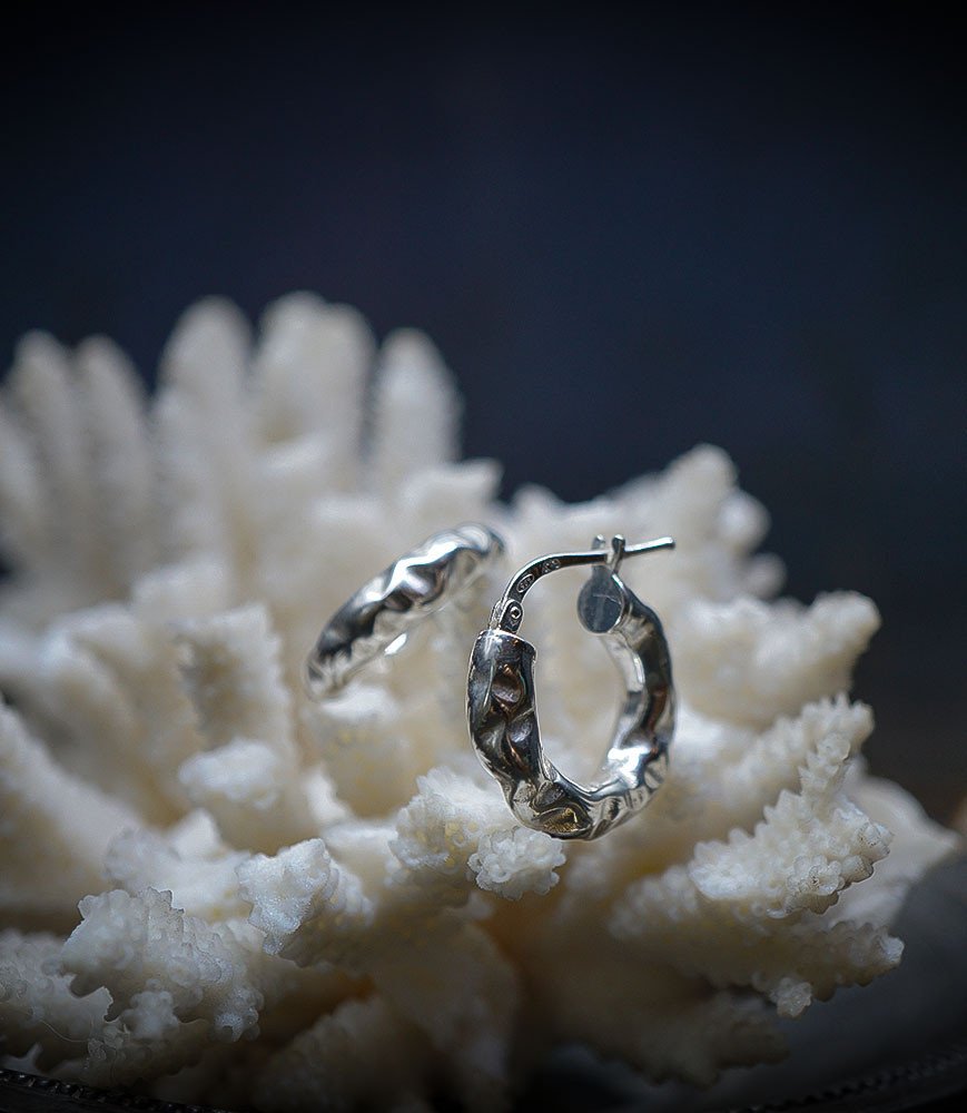 Cette paire de créoles arbore une esthétique à la fois simple et texturée, capturant la lumière de manière subtile et élégante.