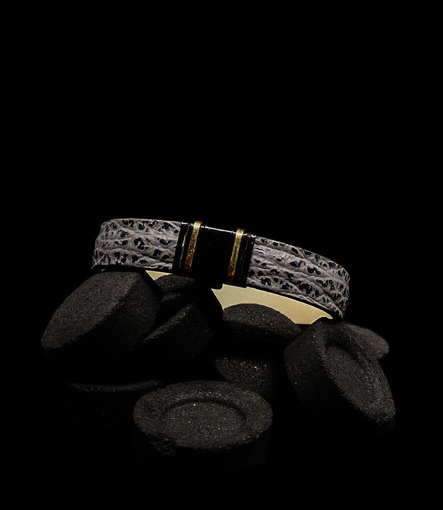 Anthony Barrouyer utilise entre autre le cuir, l'os, la corne, les minéraux associés à l'or au titre légal 750/1000 et l'argent au titre légal 925/1000.
