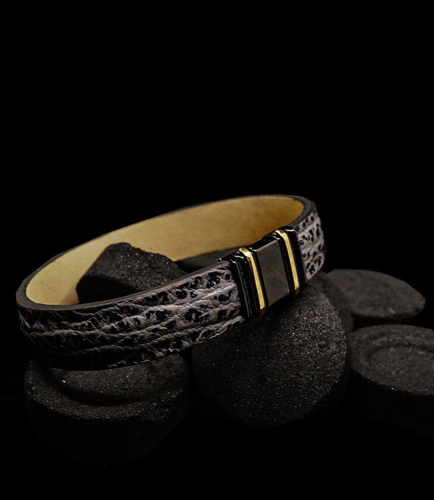 Anthony Barrouyer décline dans First Man Collection une série de bracelets cuir, des pièces uniques, dont les fermoirs sont en acier, en argent 925/1000 associés ou non à de l'or 750/1000. Les fermoirs peuvent être travaillés, noircis dans un style rock, brut, original.