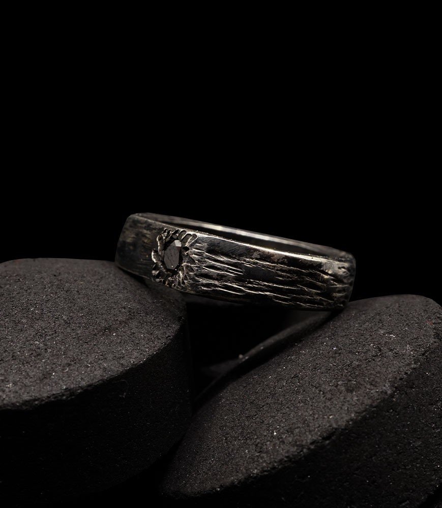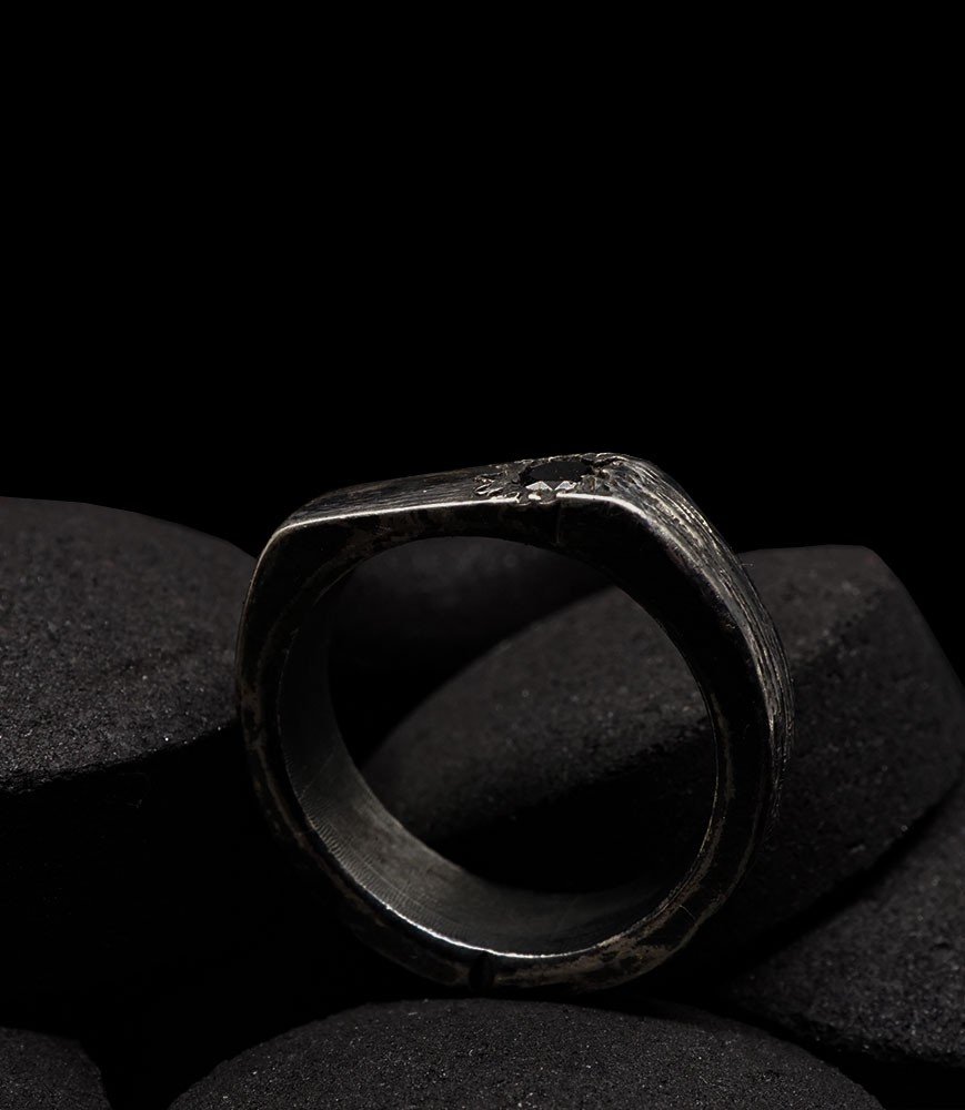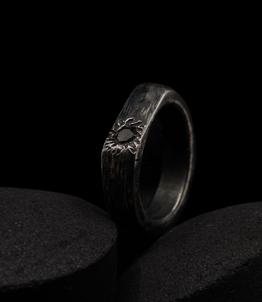 Geologic Stones Collection - Bagues Argent Massif et Diamant noir