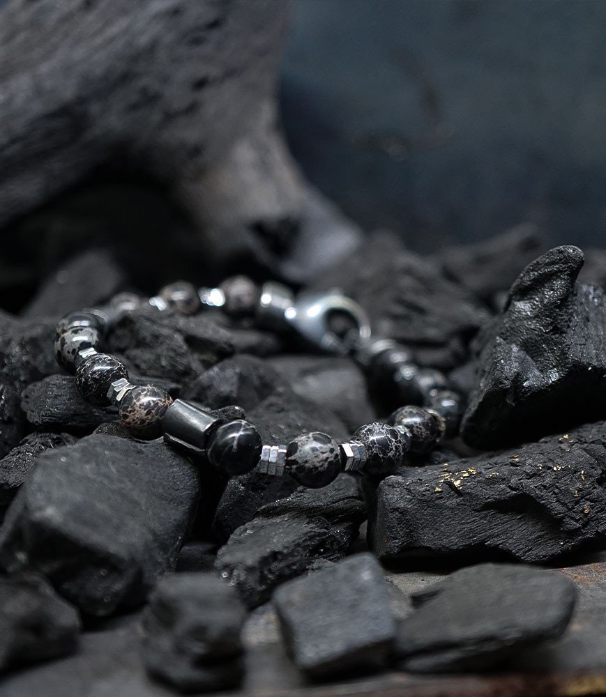 Collection Mineral Pearls - Bracelet Jaspe, Hématite et Argent Massif