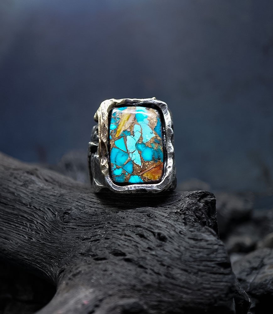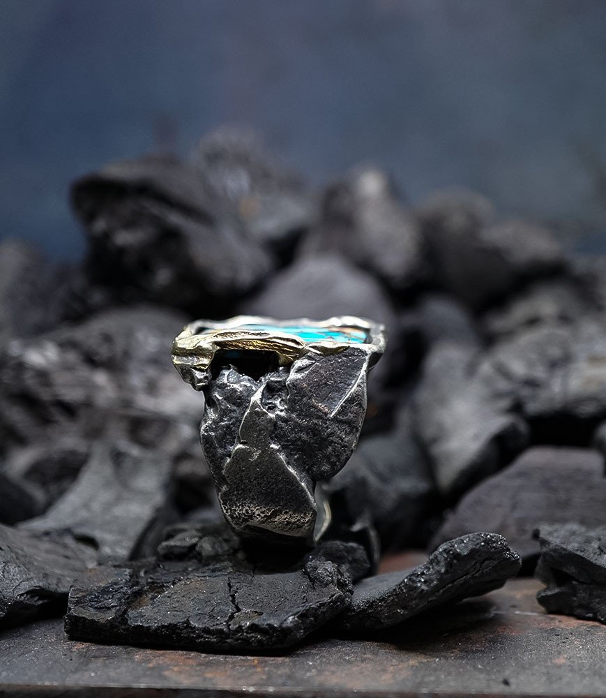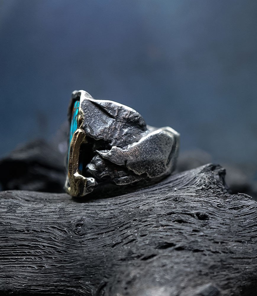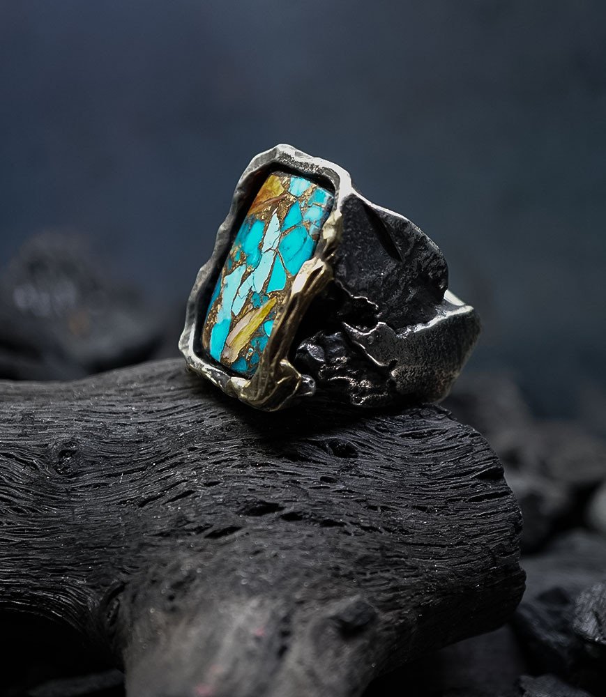 First Men Collection - Bague Argent Massif, Or et Turquoise.