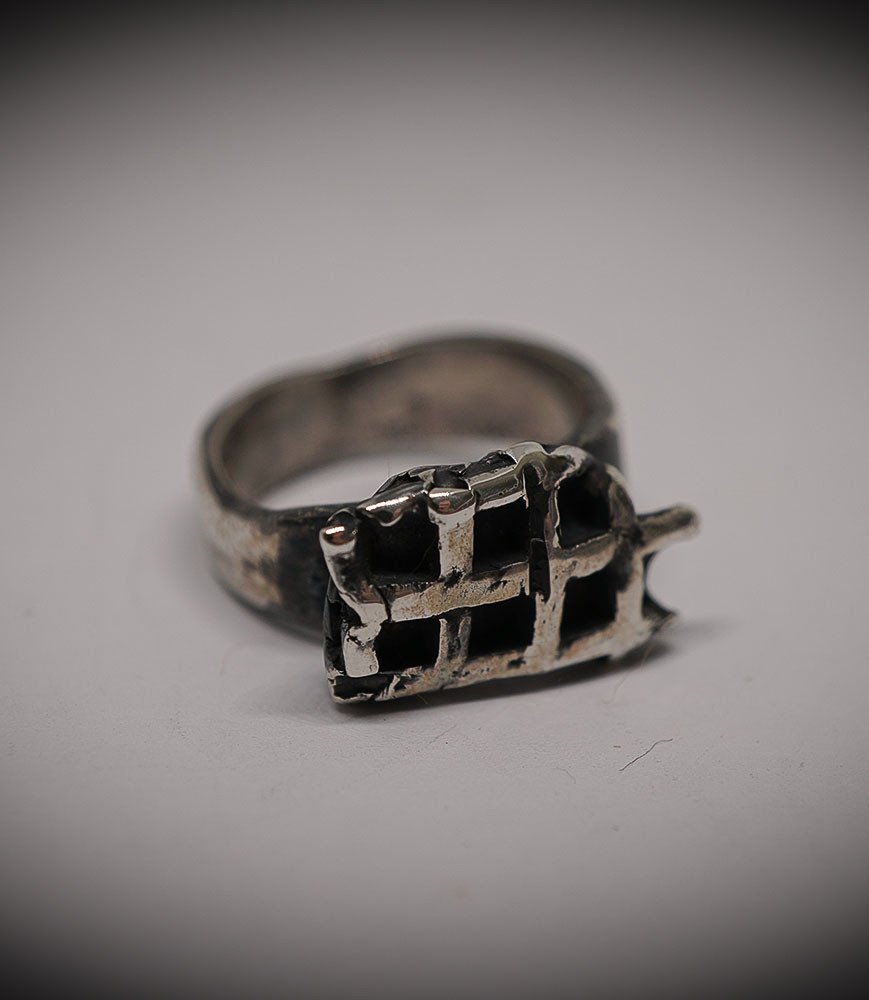 La surface de la bague est recouverte d'un motif, évoquant la surface d'une gaufre. Chaque "carré" de la gaufre est soigneusement moulé pour créer une texture uniforme.