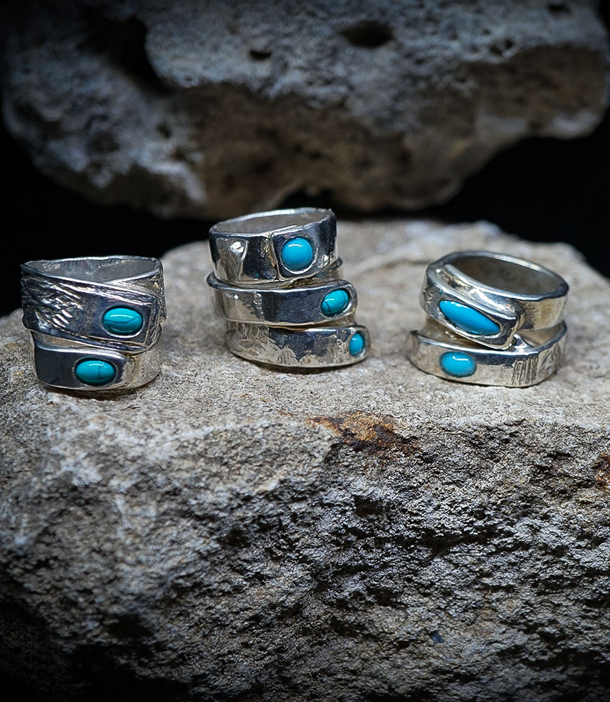 "Crossed Horizons" – The Silver & Turquoise Wrapped Ring Collection