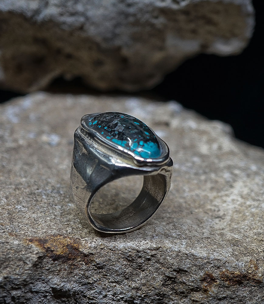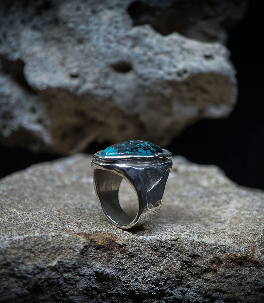 The Stone: A long, powerful, forged turquoise, set within the metal to become one with it.