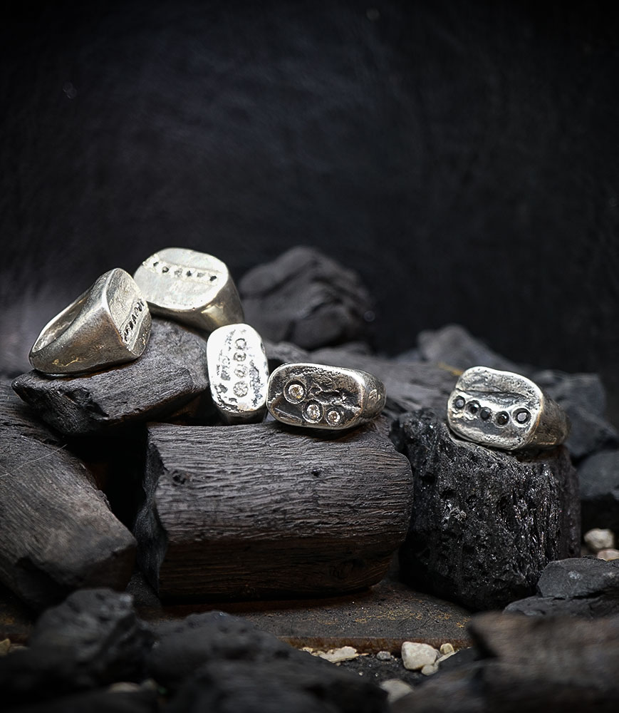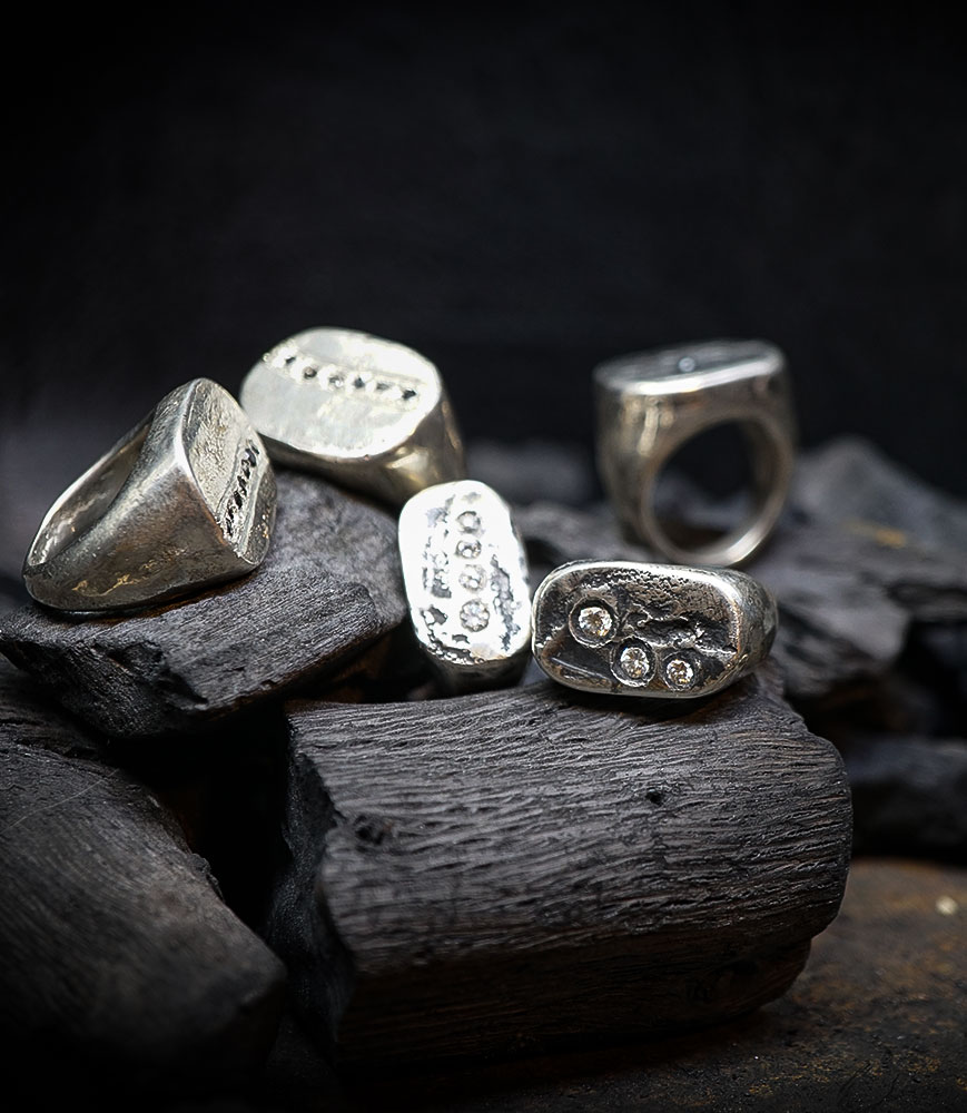 "Rock Shards" – The Silver & Rough Diamond Signet Ring Collection