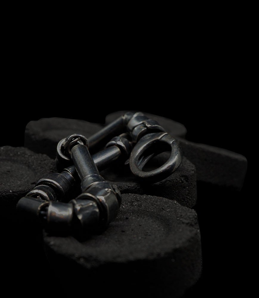 Uniqueness accentuated by the blackened patina applied to the 925/1000 silver, which gradually fades over time. Living, the jewel will reveal areas where the shiny aspect of the metal will regain its prominence.