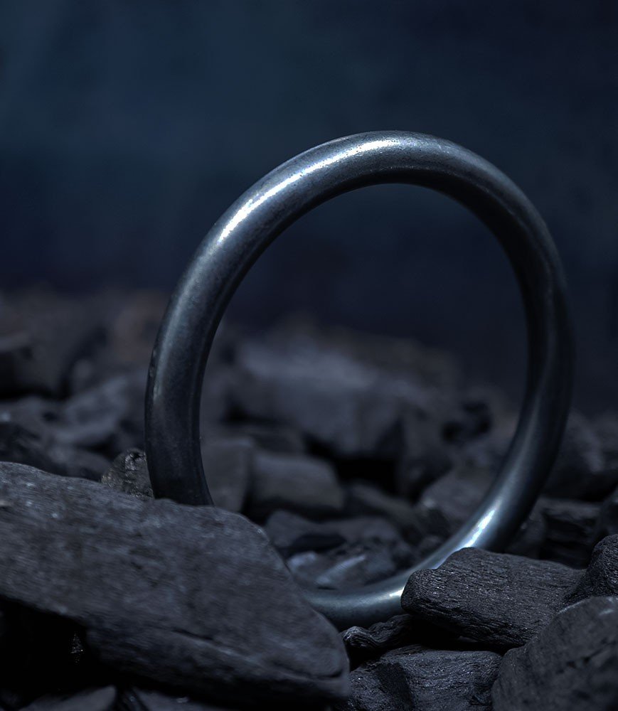 Héphaïstos Collection is a set of very different models but where the same technique is used for each unique piece, the work of the metal very marked and visible, raw shapes, forged, a blackened patina, with apparent roughness, bracelets, hammered rings and also necklaces.