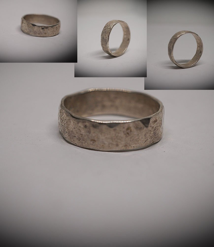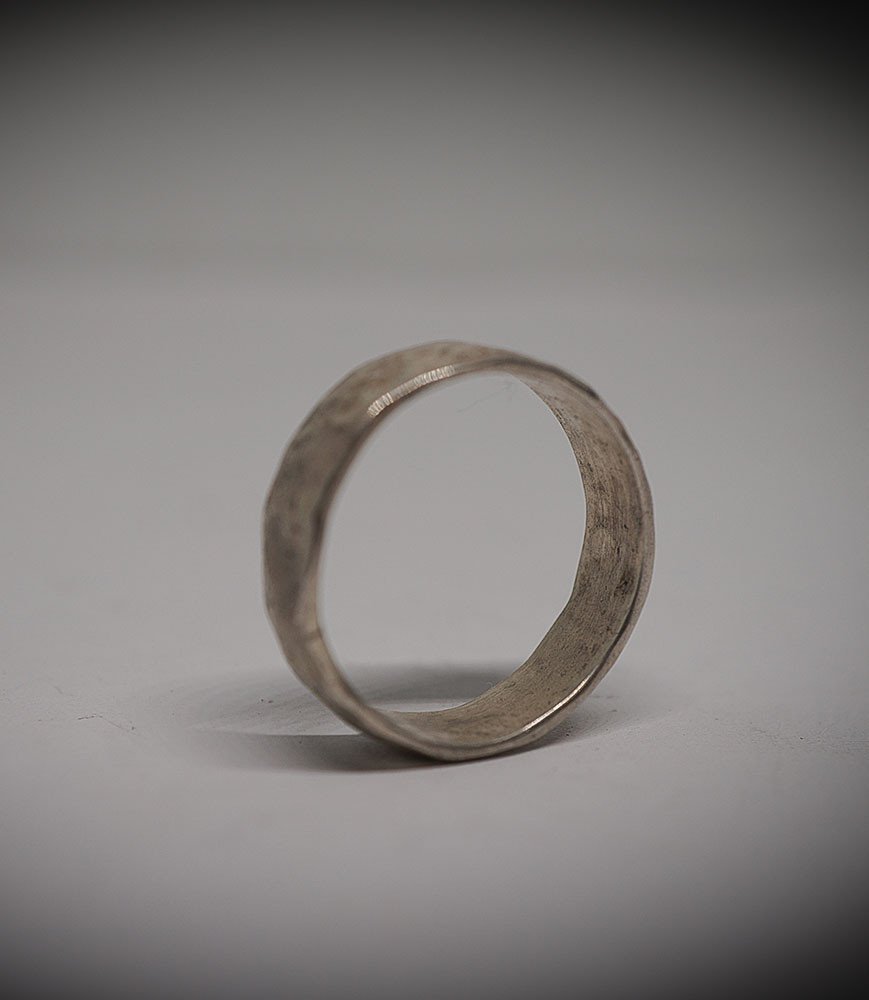 This piece measures 0.7 cm, the silver is shiny reinforcing the effect of the hammering.