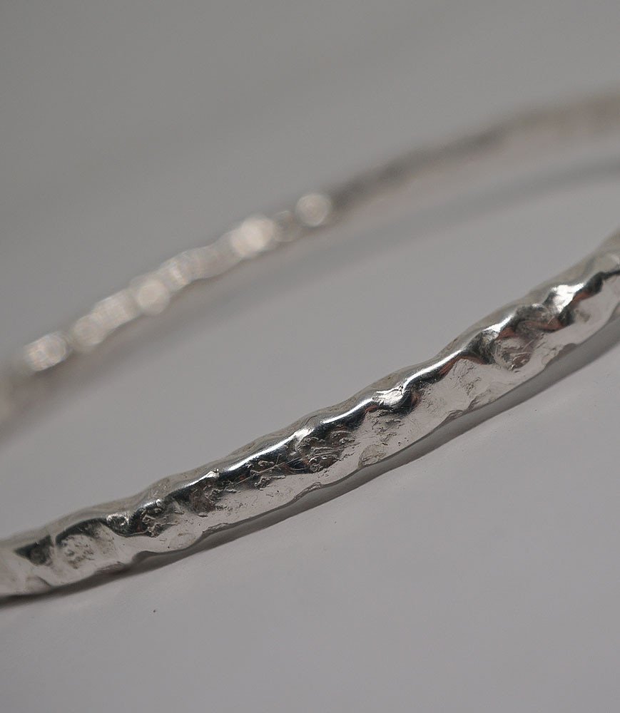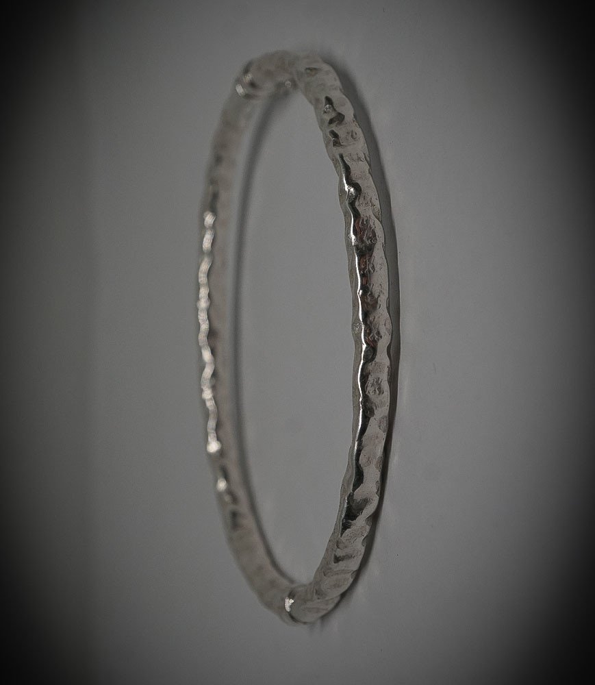 The hammered surface covers the entire bracelet, giving an interesting visual and tactile effect.